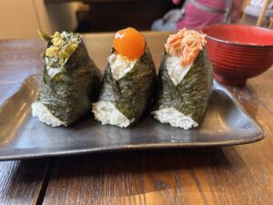 私たちが下ごしらえした具材で、職人が握るにぎりたてふわふわ『おにぎり鼓』のおにぎりです。 ぜひご賞味ください。