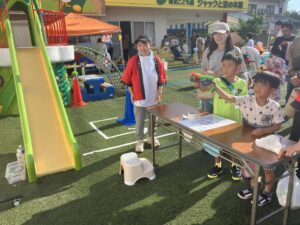 秋祭りのゲームコーナー♪ ハンマーでポンっとキャンディを飛ばして箱に入れるキャンディポン。シューティングガンでは的をねらって楽しめます。子どもも大人も一緒にどうぞ!